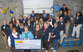 The employees took time out of their day preparing the store for the Thanksgiving holiday to present the check as a proud group.